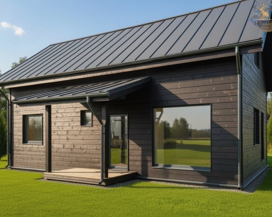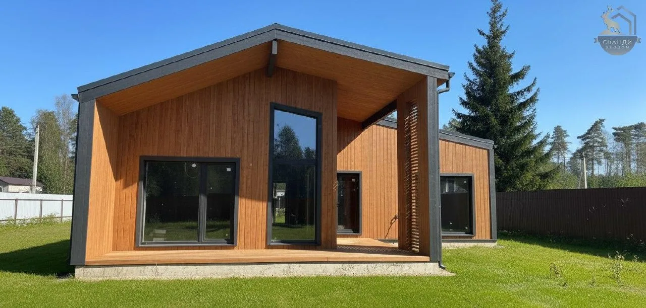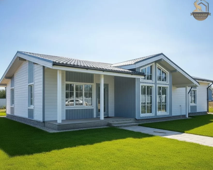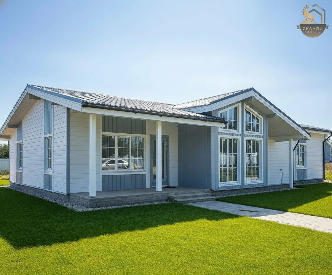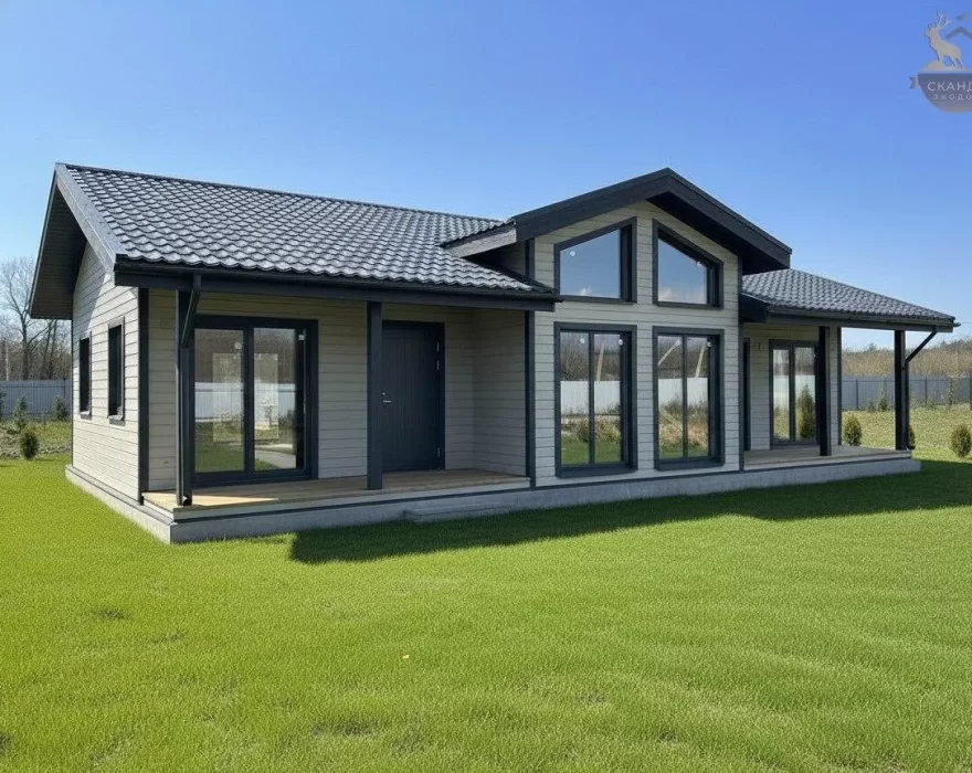 Одноэтажный каркасный дом - барнхаус, 105 м²