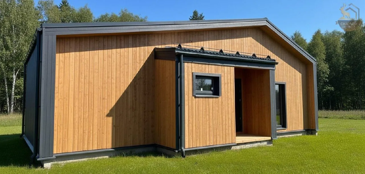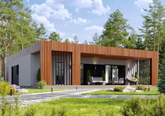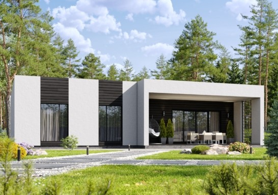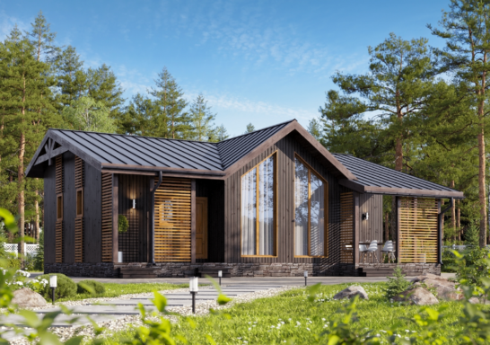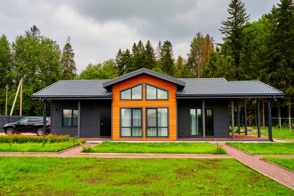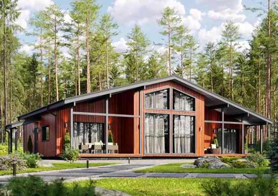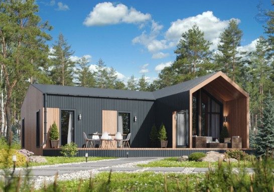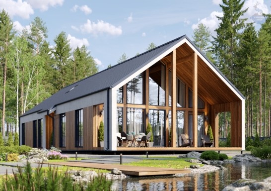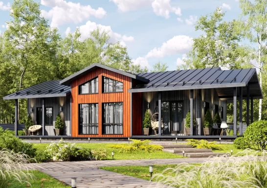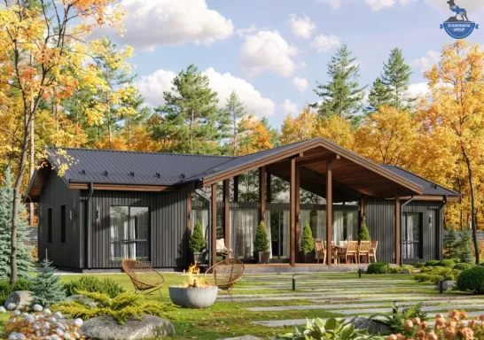 Одноэтажный каркасный дом - барнхаус, 105 м²