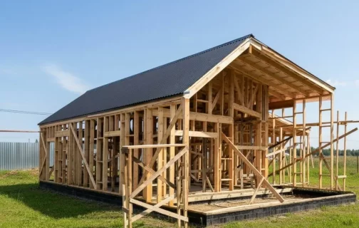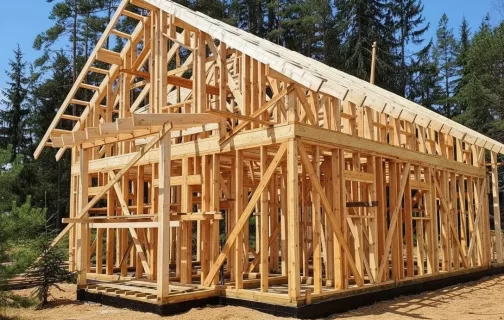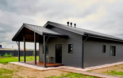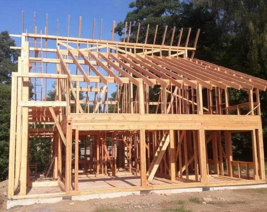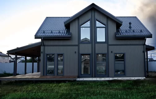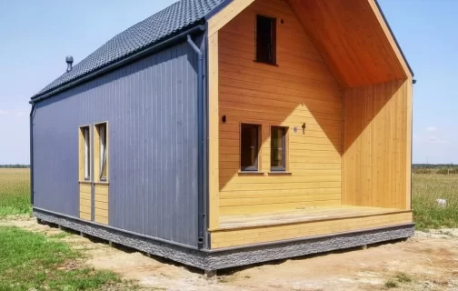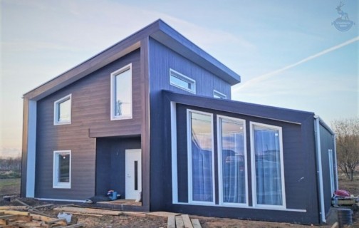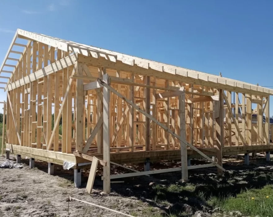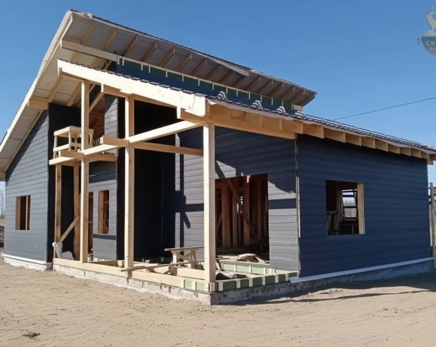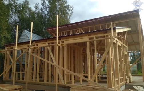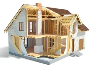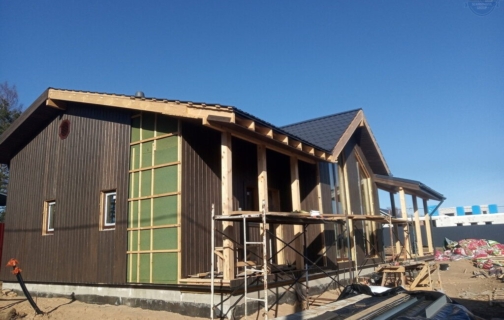 • каркас дома с внешней отделкой. Этот вариант отлично подходит для тех, кто хочет строить дом поэтапно, так как строительство дома можно приостановить на любое время, это самый недорогой вариант.