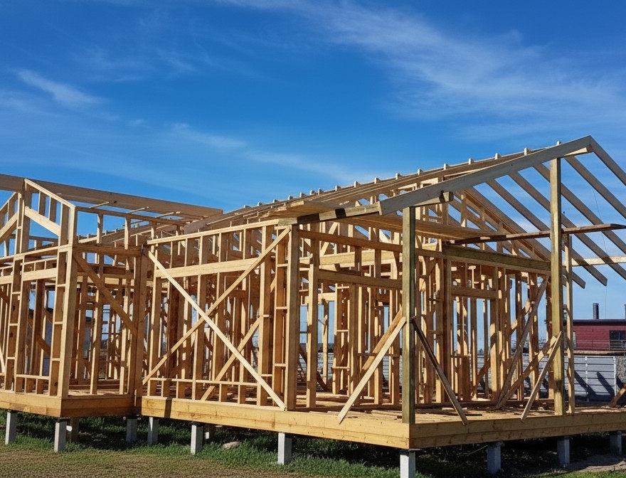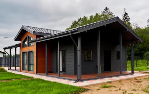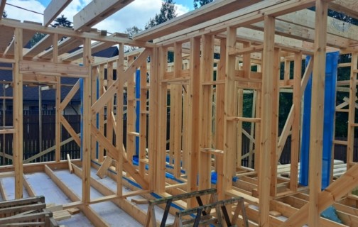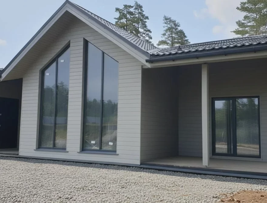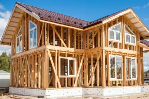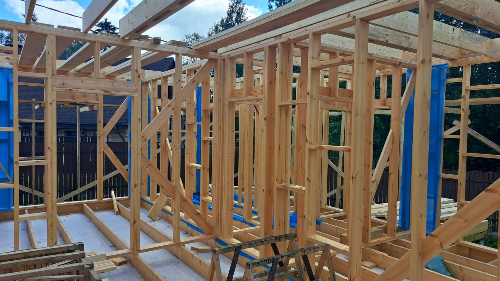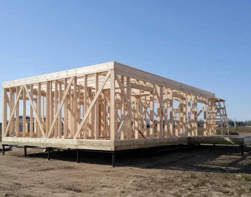• каркас дома с внешней отделкой. Этот вариант отлично подходит для тех, кто хочет строить дом поэтапно, так как строительство дома можно приостановить на любое время, это самый недорогой вариант.