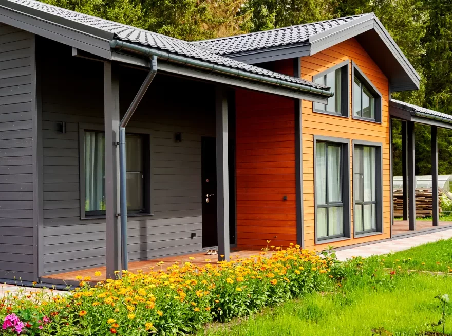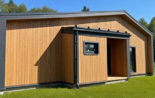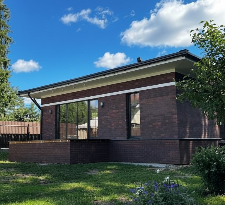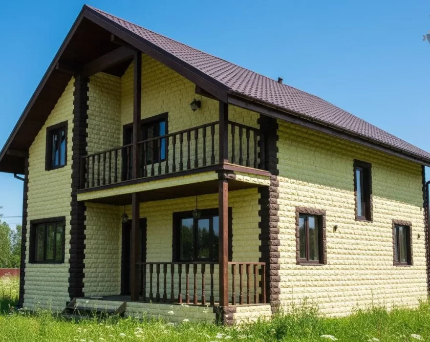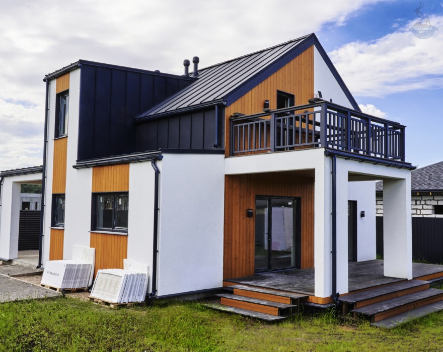 • Внешняя отделка: Кликфальц Grind Line, штукатурка, имитация бруса