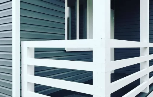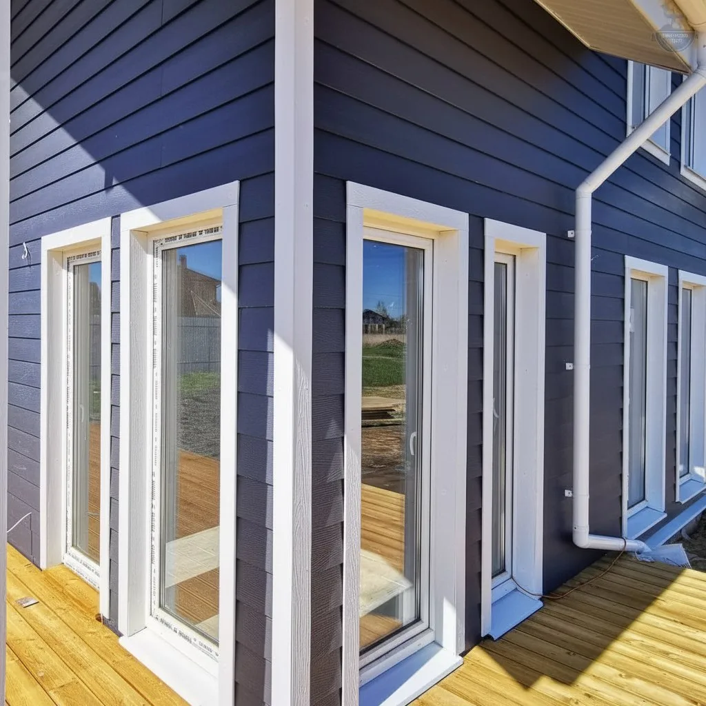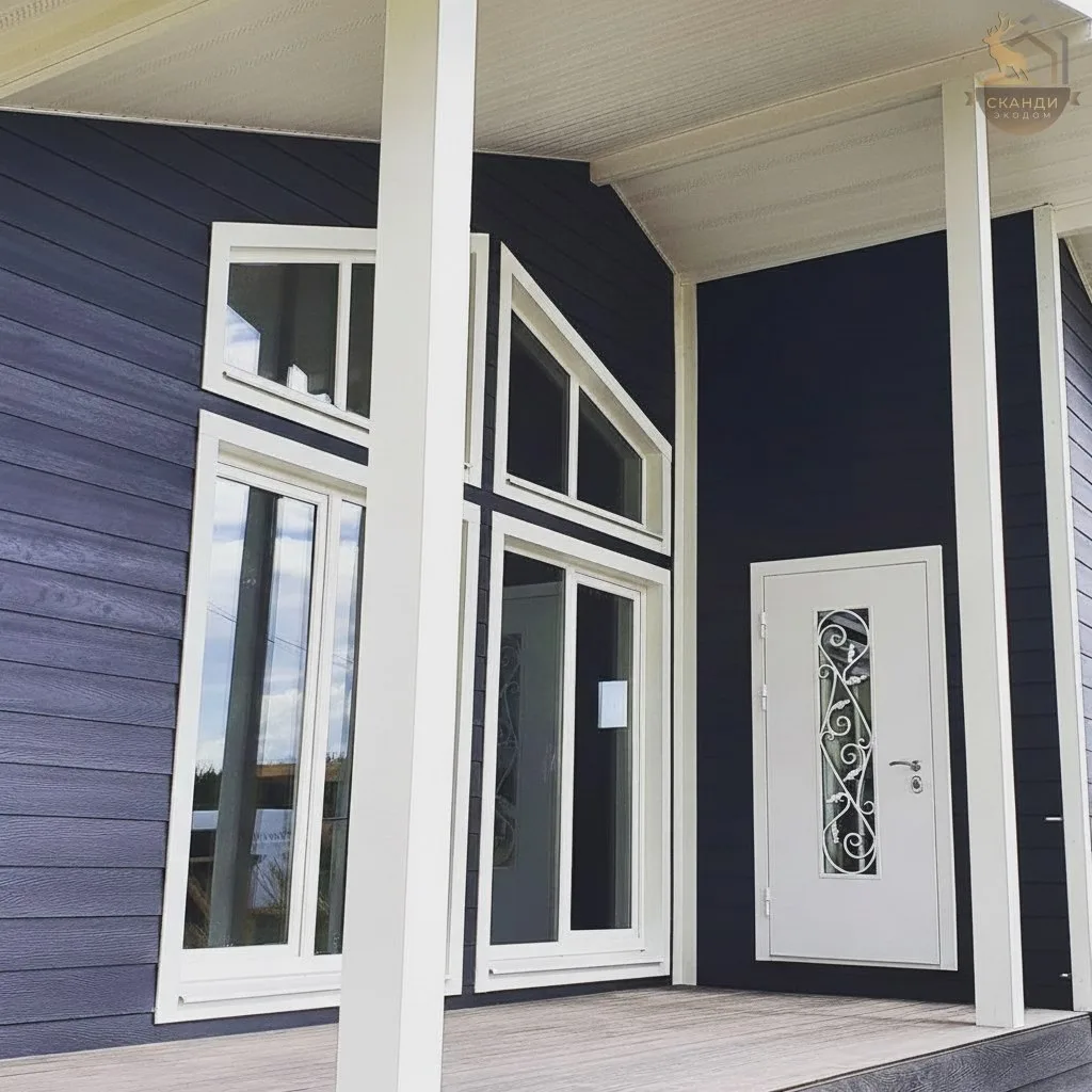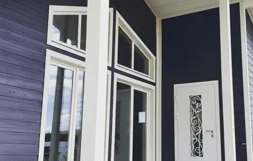• Внешняя отделка. Фиброцементный сайдинг «Decover» , входная дверь., дверь балконная