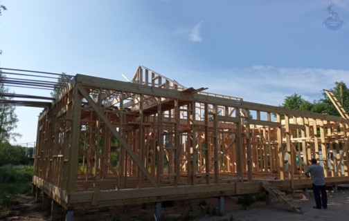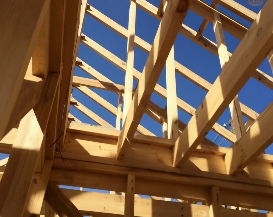Следующий этап – сооружение «скелета» дома, то есть каркаса: стен, межэтажных перекрытий, стоек, стропил и поясов. Строители «СкандиЭкоДом» используют древесину камерной сушки высшего сорта, экологически чистую и устойчивую к грибкам.