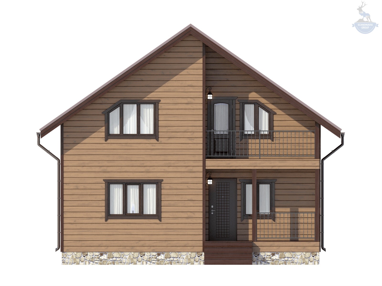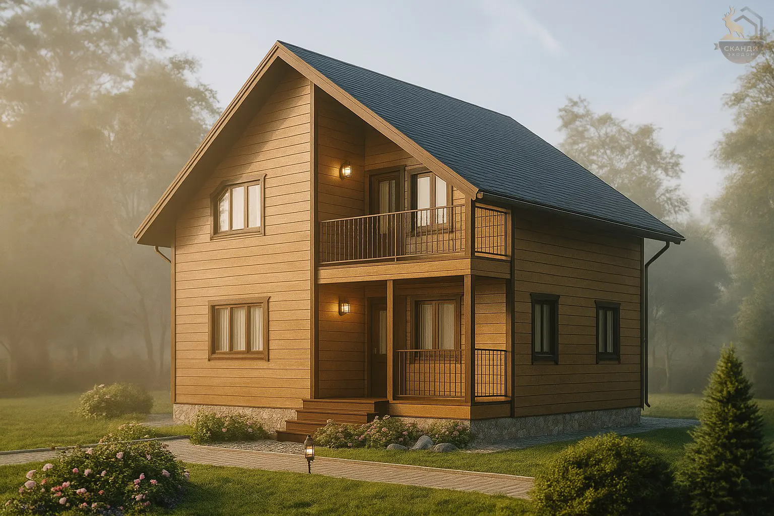 Двухэтажный каркасный дом с балконом – уютный коттедж для загородного проживания