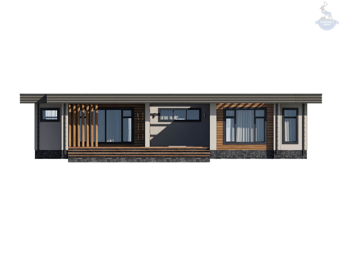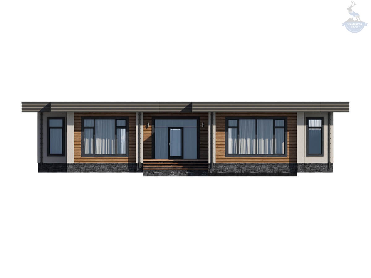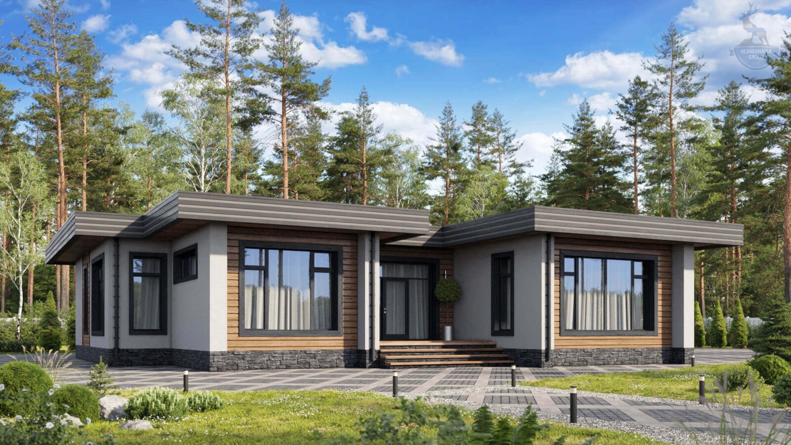 Каркасный дом с плоской крышей по проекту КД-1020 – это просторное одноэтажное жилье, выполненное в лаконичном стиле «модерн», который смотрится дорого, но сдержанно. Коттедж станет уютным жилищем для большой семьи из 4-6 человек или же для тех, кто хочет обустроить пространство коттеджа для разнообразных видов деятельности. Здесь есть возможность выделить место под кабинет, мастерскую, игровую.