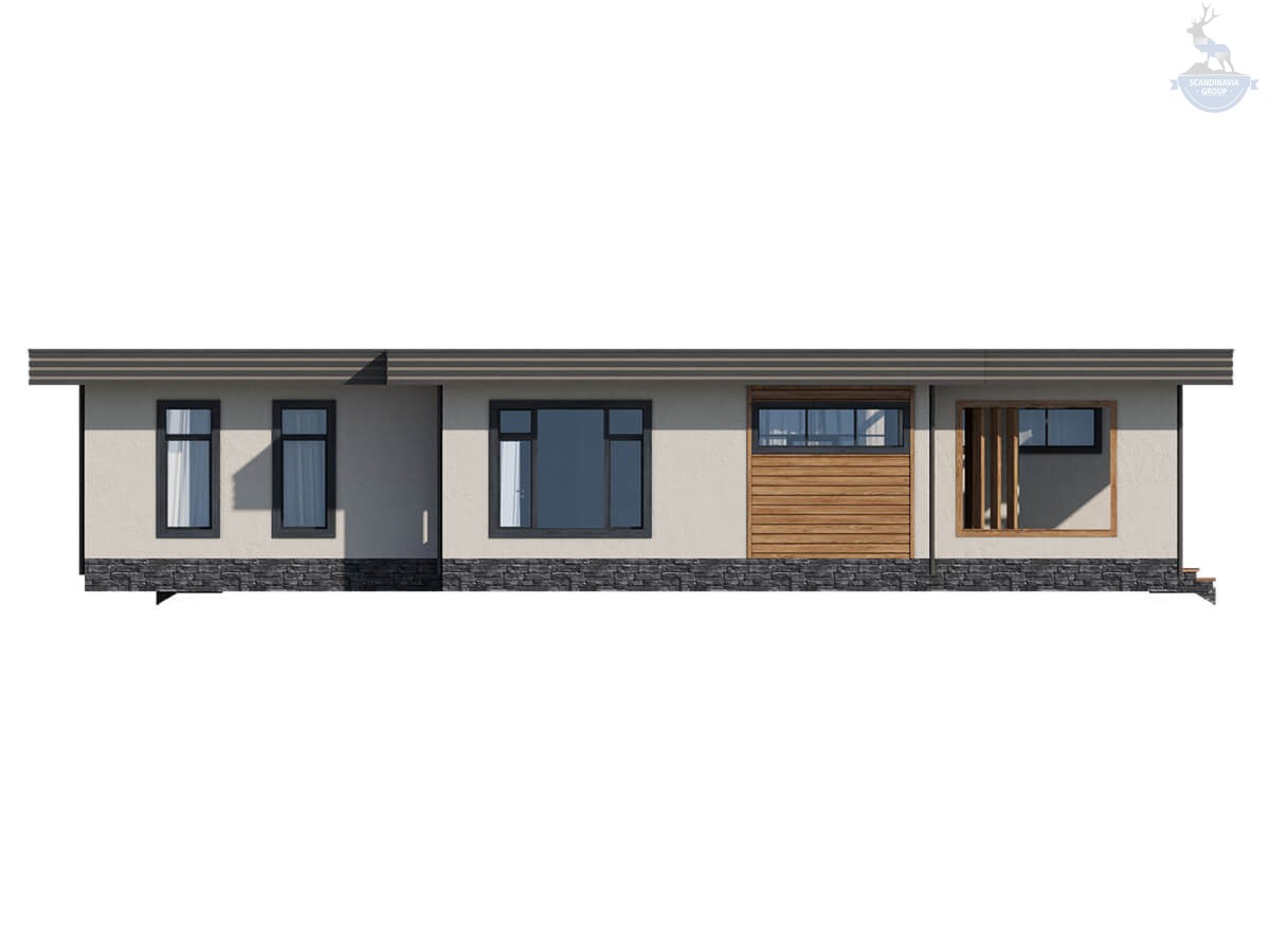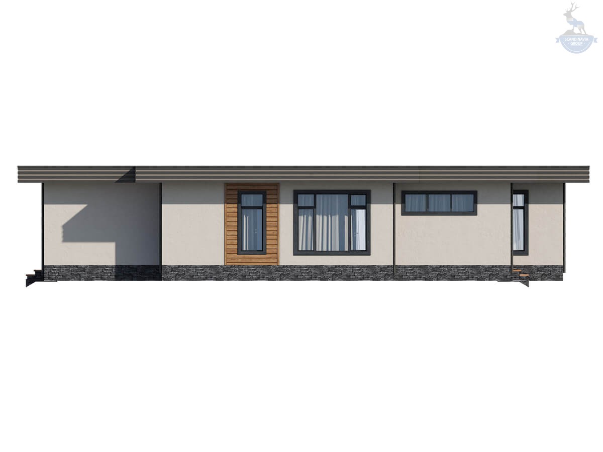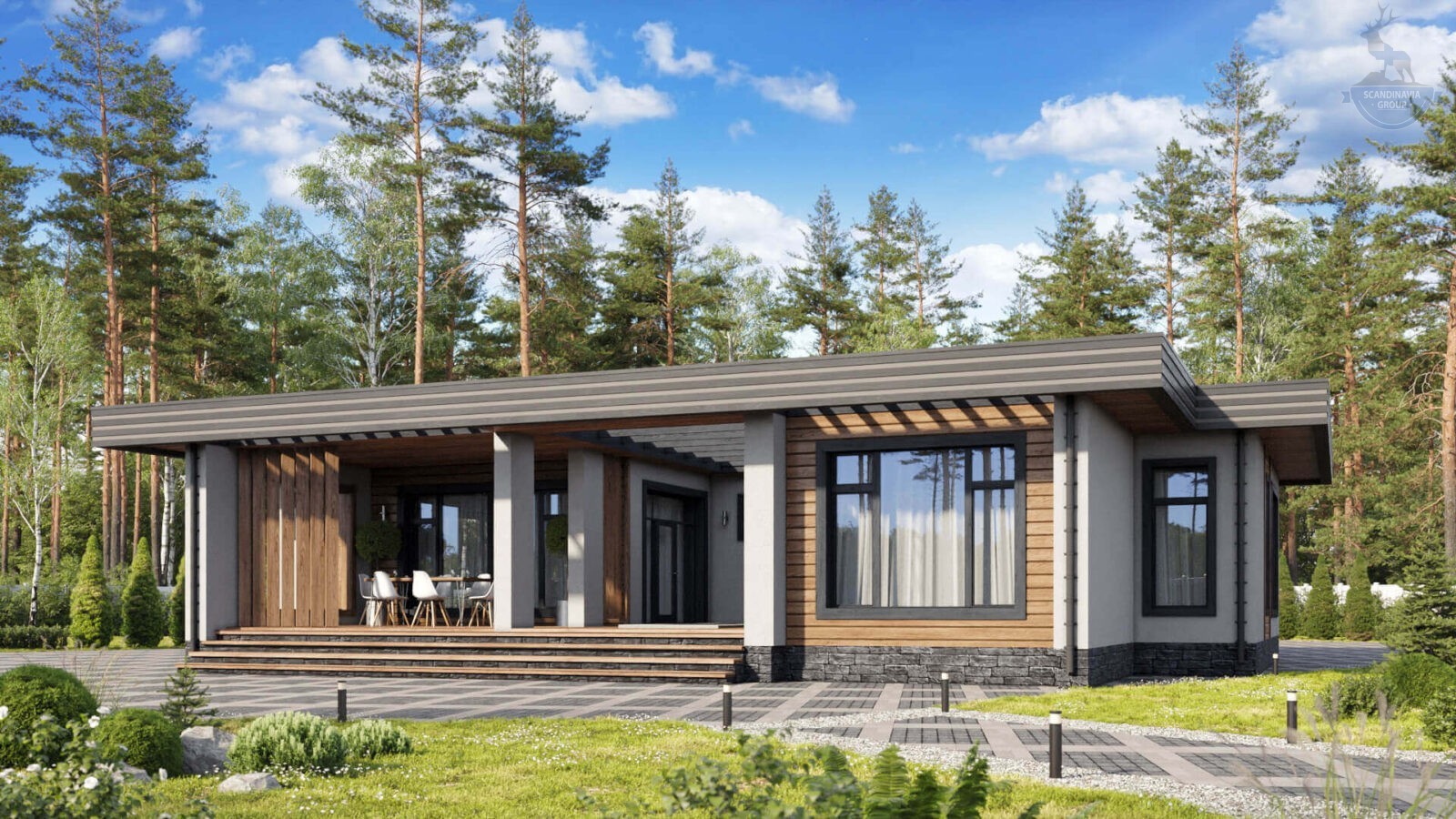 Каркасный дом с плоской крышей по проекту КД-1020 – это просторное одноэтажное жилье, выполненное в лаконичном стиле «модерн», который смотрится дорого, но сдержанно. Коттедж станет уютным жилищем для большой семьи из 4-6 человек или же для тех, кто хочет обустроить пространство коттеджа для разнообразных видов деятельности. Здесь есть возможность выделить место под кабинет, мастерскую, игровую.