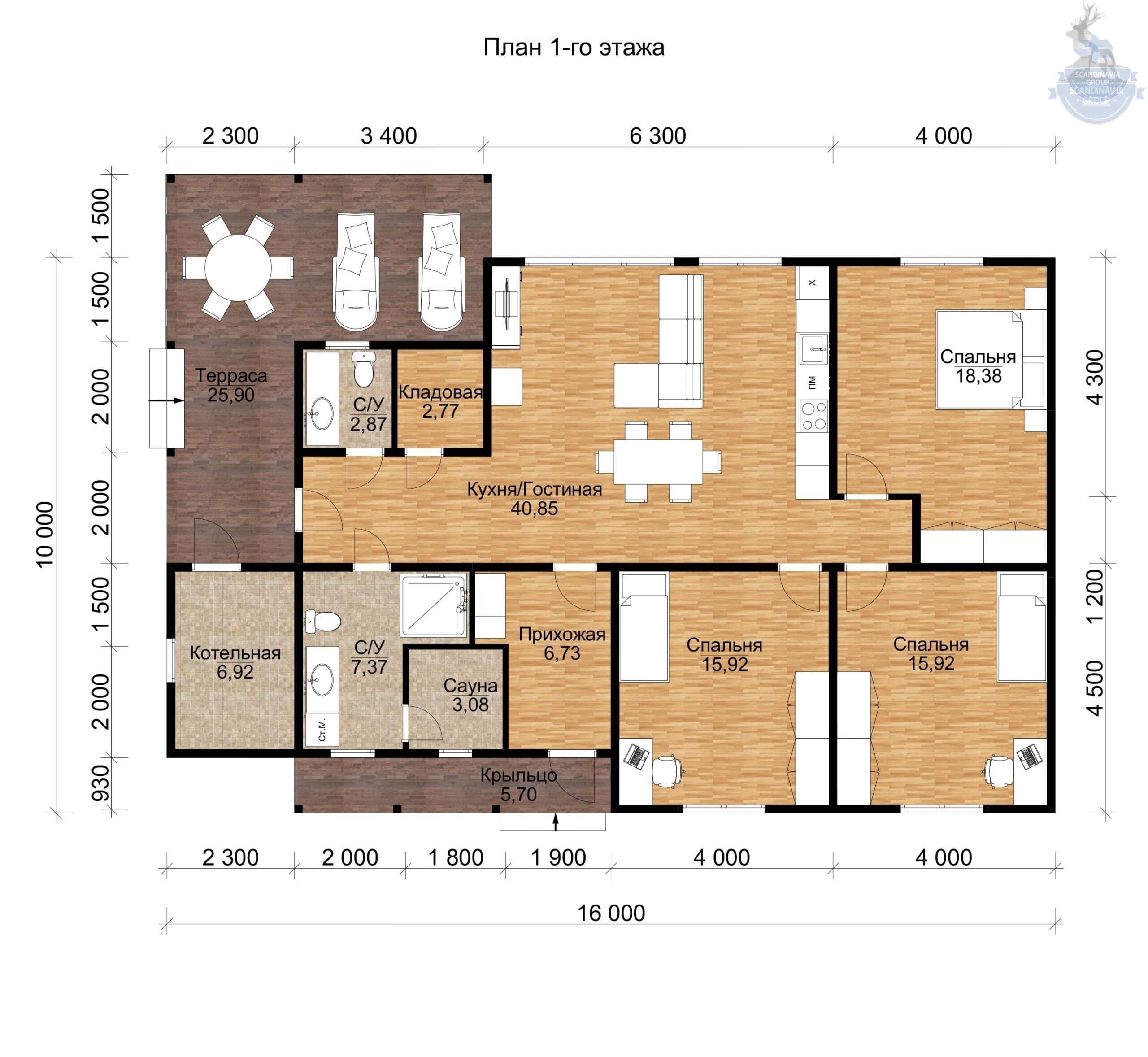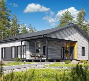 Одноэтажный каркасный дом с террасой и котельной, 153 м²