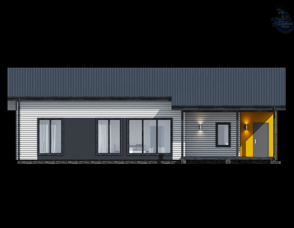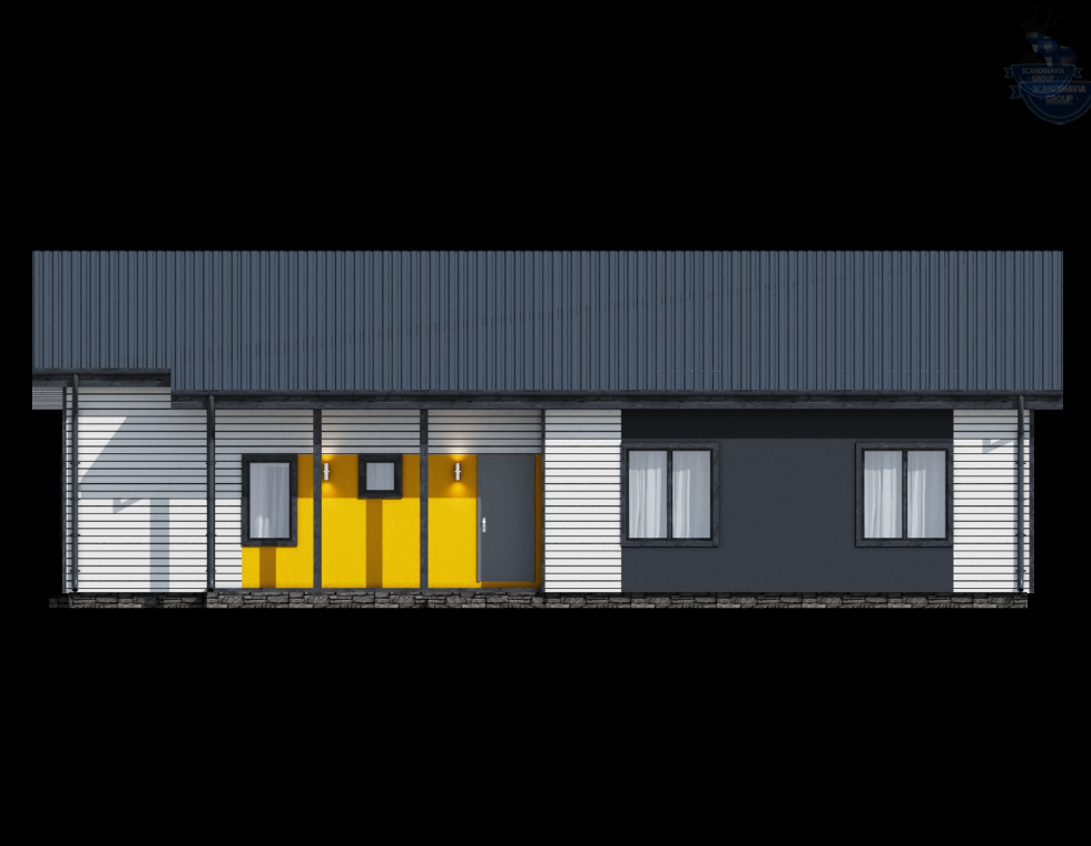 КД-1090 представляет собой великолепный одноэтажный коттедж в современном стиле, сочетающий в себе последние тенденции в архитектуре и идеально вписывающийся на узкий участок. В этом доме гармонично сочетаются функциональность и эстетика, создавая идеальное пространство для комфортной жизни за городом.