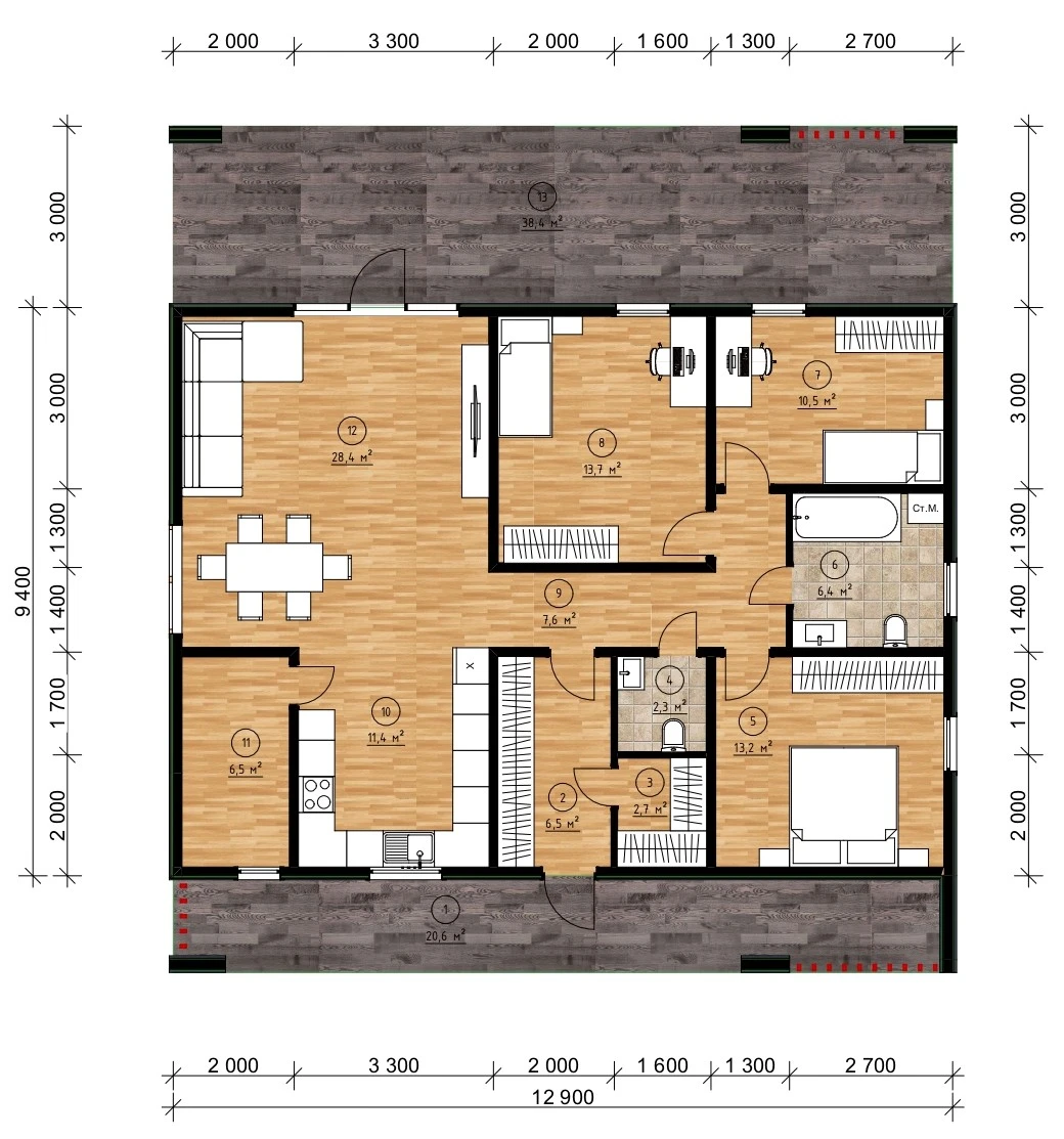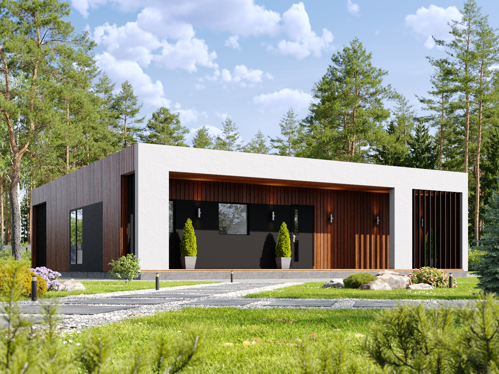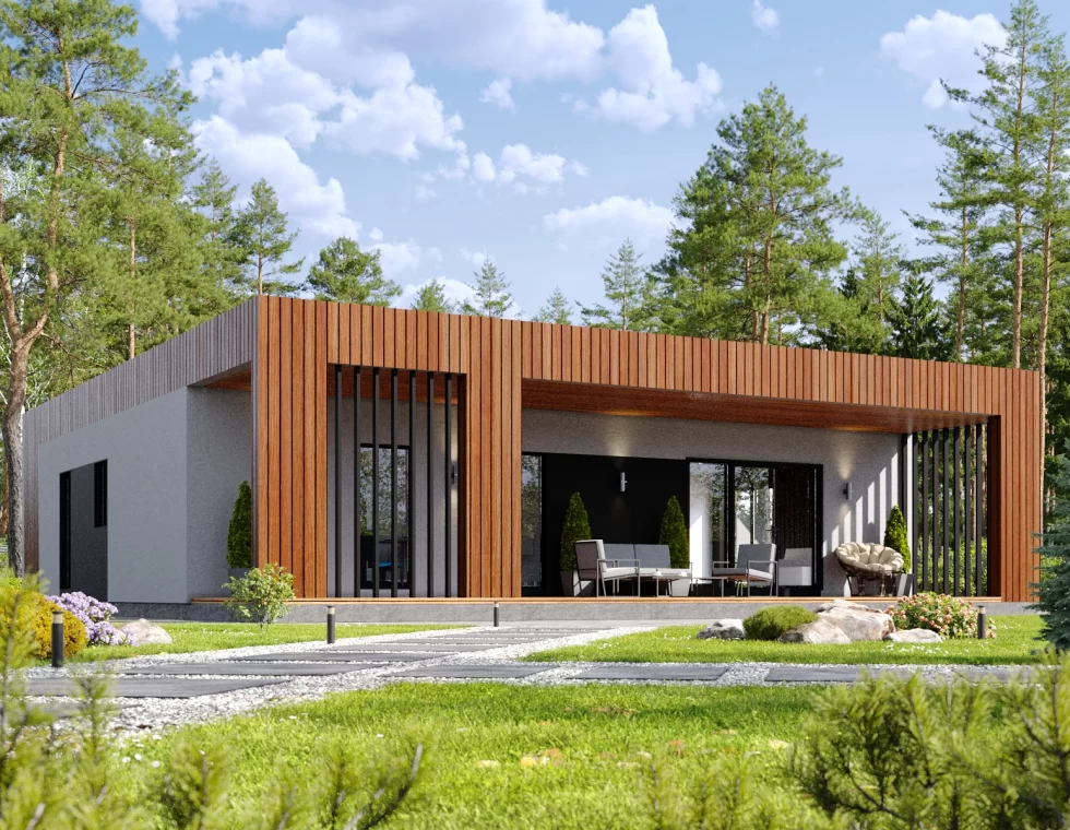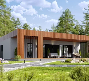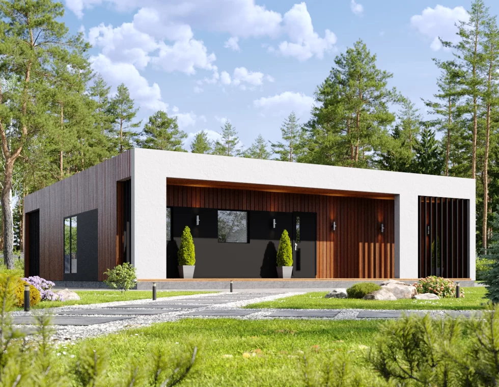 Восхитительный каркасный дом с плоской кровлей КД-1110 представляет собой архитектурное произведение искусства, воплощающее в себе современность и уют. Этот прекрасный дом с тремя просторными спальнями и двумя изысканными санузлами станет идеальным убежищем для вашей семьи.