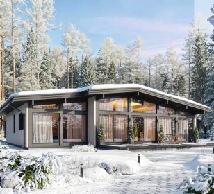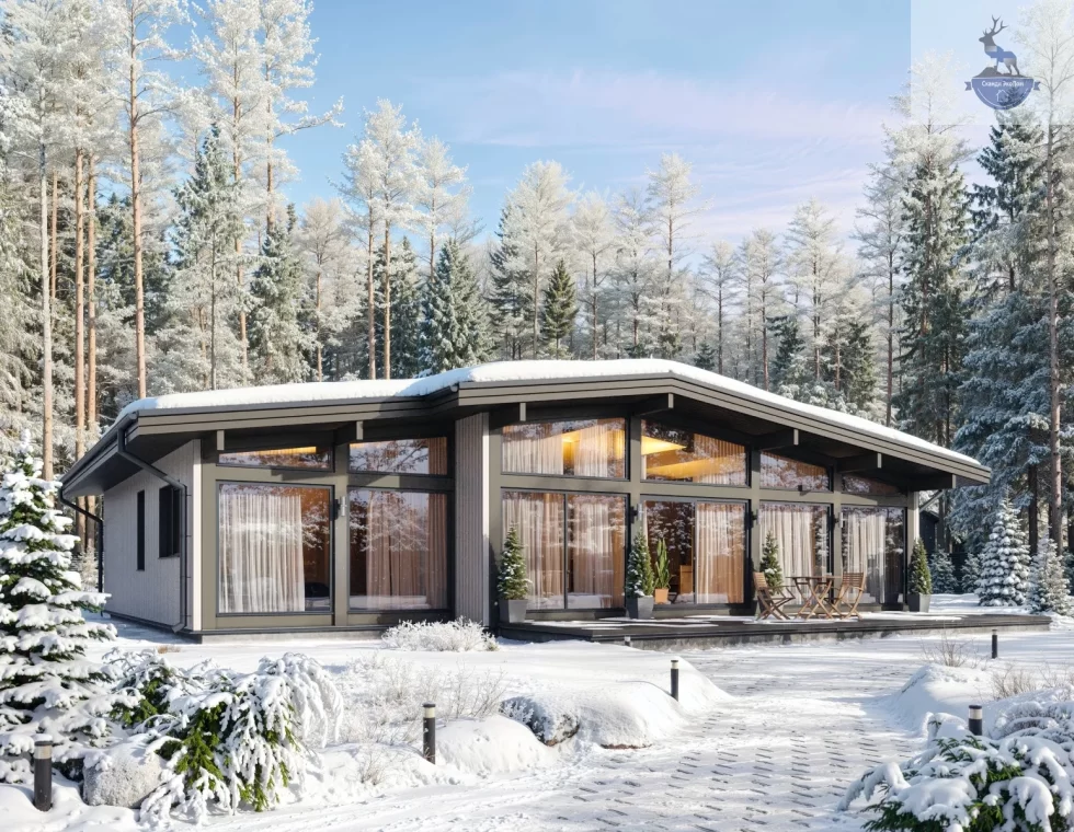 Дом уже собран и утеплён. Добавлено напольное покрытие и утепление дома. Можно приступать к монтажу инженерных систем (электрика, сантехника, отопление), а затем переходить к предчистовой или чистовой отделке.