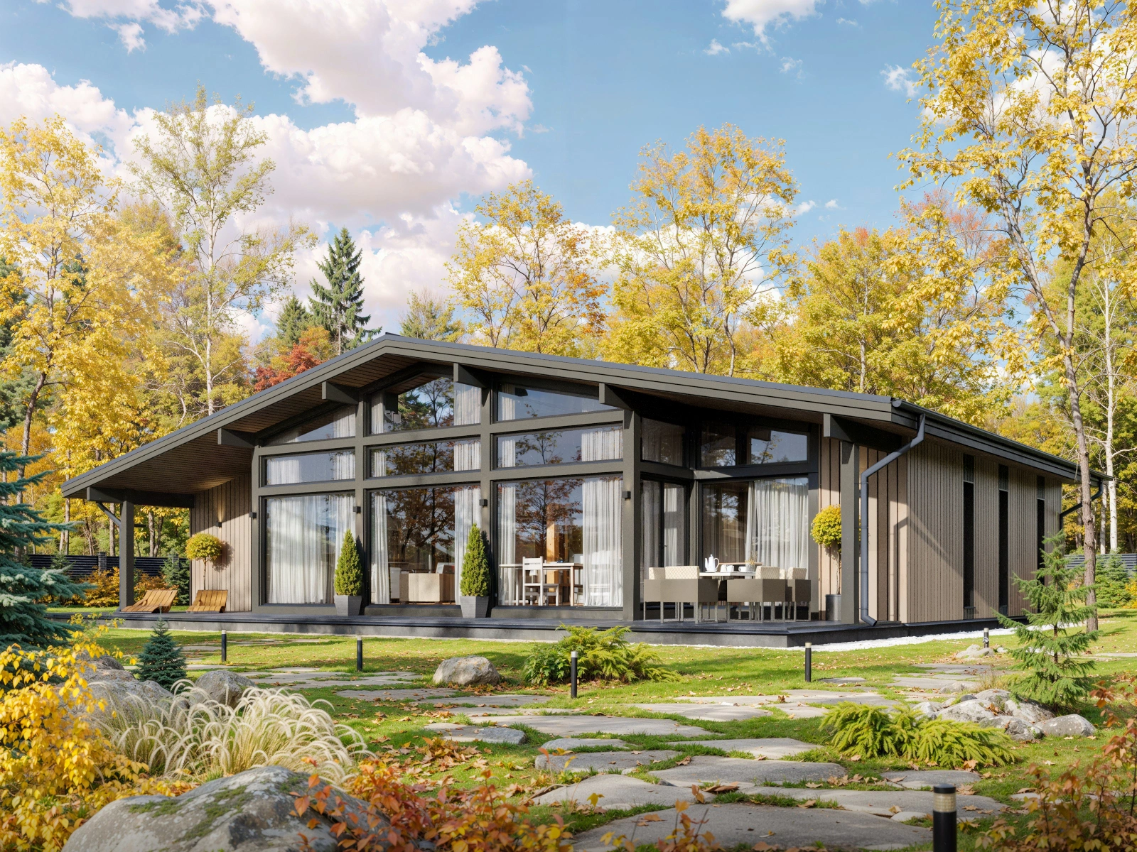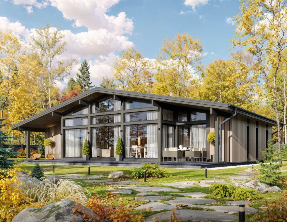 Одноэтажный фахверк по финской каркасной технологии, 206 м²