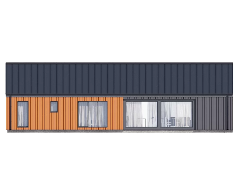 КД-1350 – загородное жилье для любителей комфорта и лаконичной эстетики. Здание имеет прямоугольную форму и подойдет для вытянутого участка. Общая площадь дома составляет 189 квадратных метра. Удобная планировка позволит свободно разместиться семье из 3-5 человек.