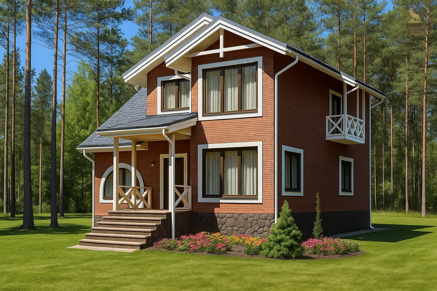 Двухэтажный каркасный дома КД-190: уютная и удобная планировка
