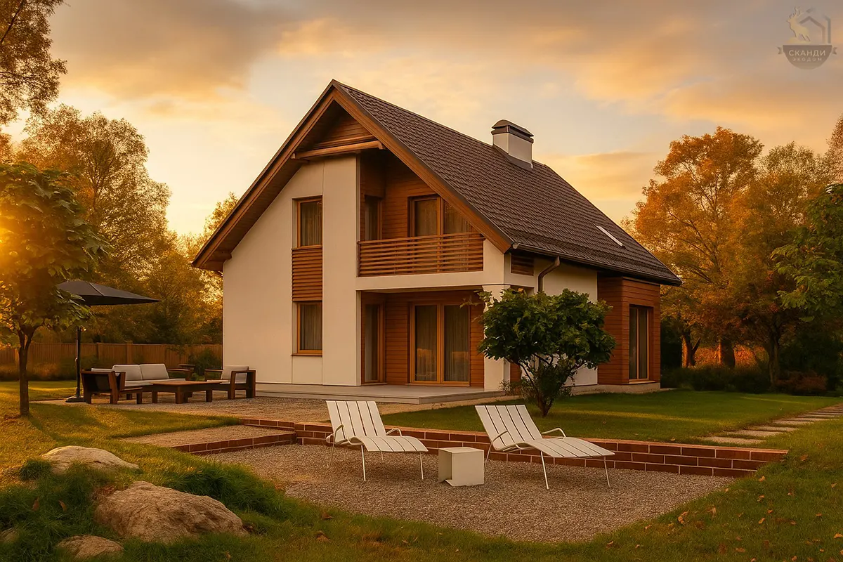 Дом собран в прочную “коробку”: фундамент, обвязка, каркас, окна/дверь, кровля, внешняя отделка и водосточная система. Дальше можно планировать следующие этапы — утепление, инженерию и внутренние работы под свои задачи и бюджет. Можно остановить строительство на любой срок.