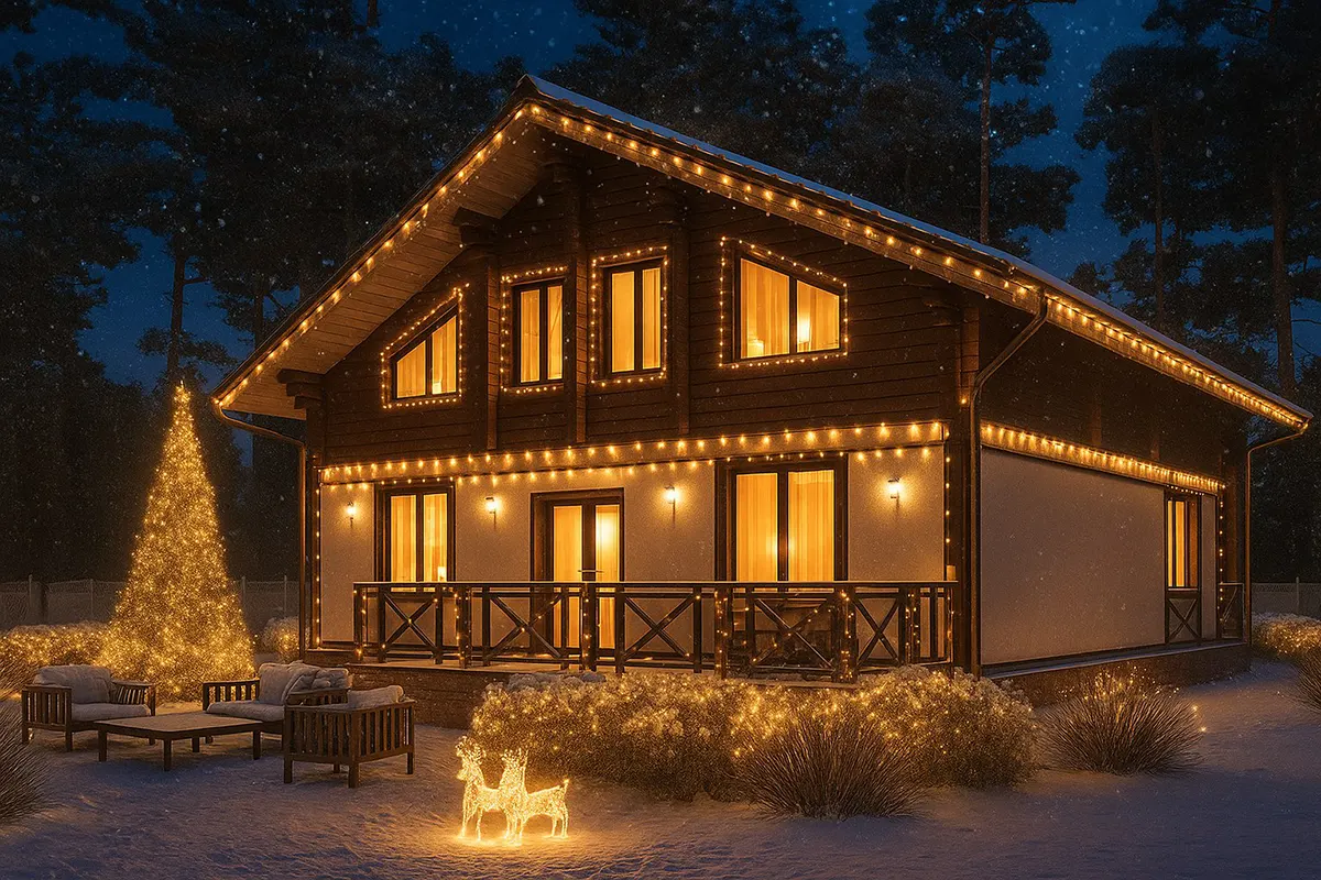 Дом собран в прочную “коробку”: фундамент, обвязка, каркас, окна/дверь, кровля, внешняя отделка и водосточная система. Дальше можно планировать следующие этапы — утепление, инженерию и внутренние работы под свои задачи и бюджет. Можно остановить строительство на любой срок.
