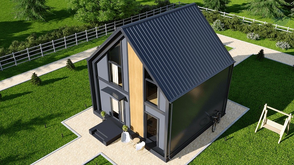 Каркасный дом в стиле барнхаус, 71 м²