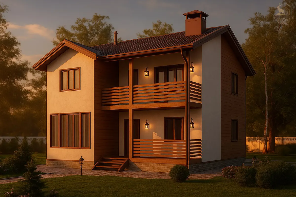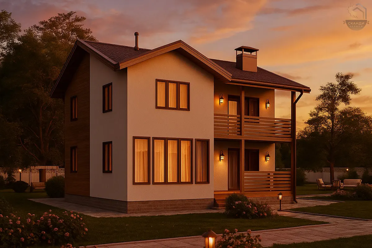 Двухэтажный каркасный дом с балконом и террасой: светлое и теплое жилье для большой семьи