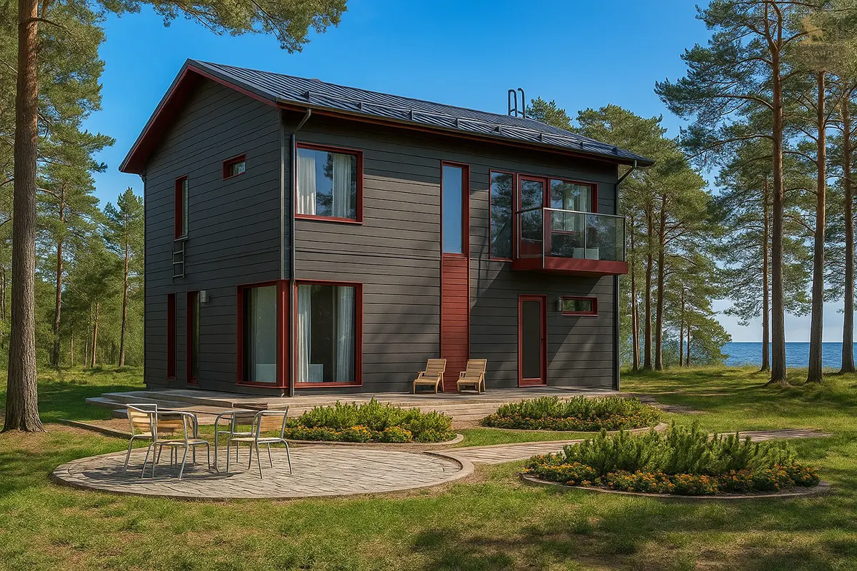 Дом собран в прочную “коробку”: фундамент, обвязка, каркас, окна/дверь, кровля, внешняя отделка и водосточная система. Дальше можно планировать следующие этапы — утепление, инженерию и внутренние работы под свои задачи и бюджет. Можно остановить строительство на любой срок.
