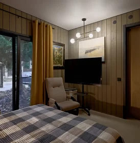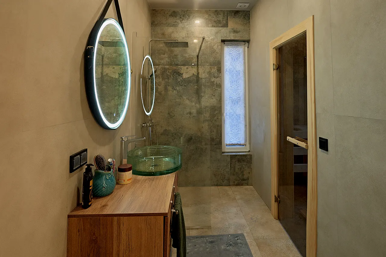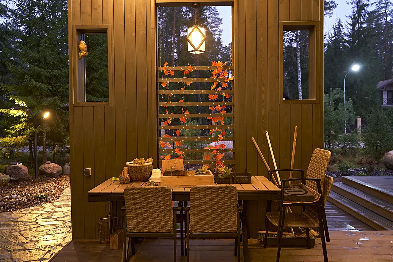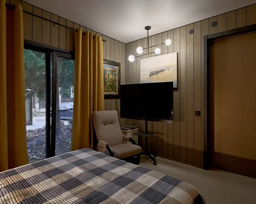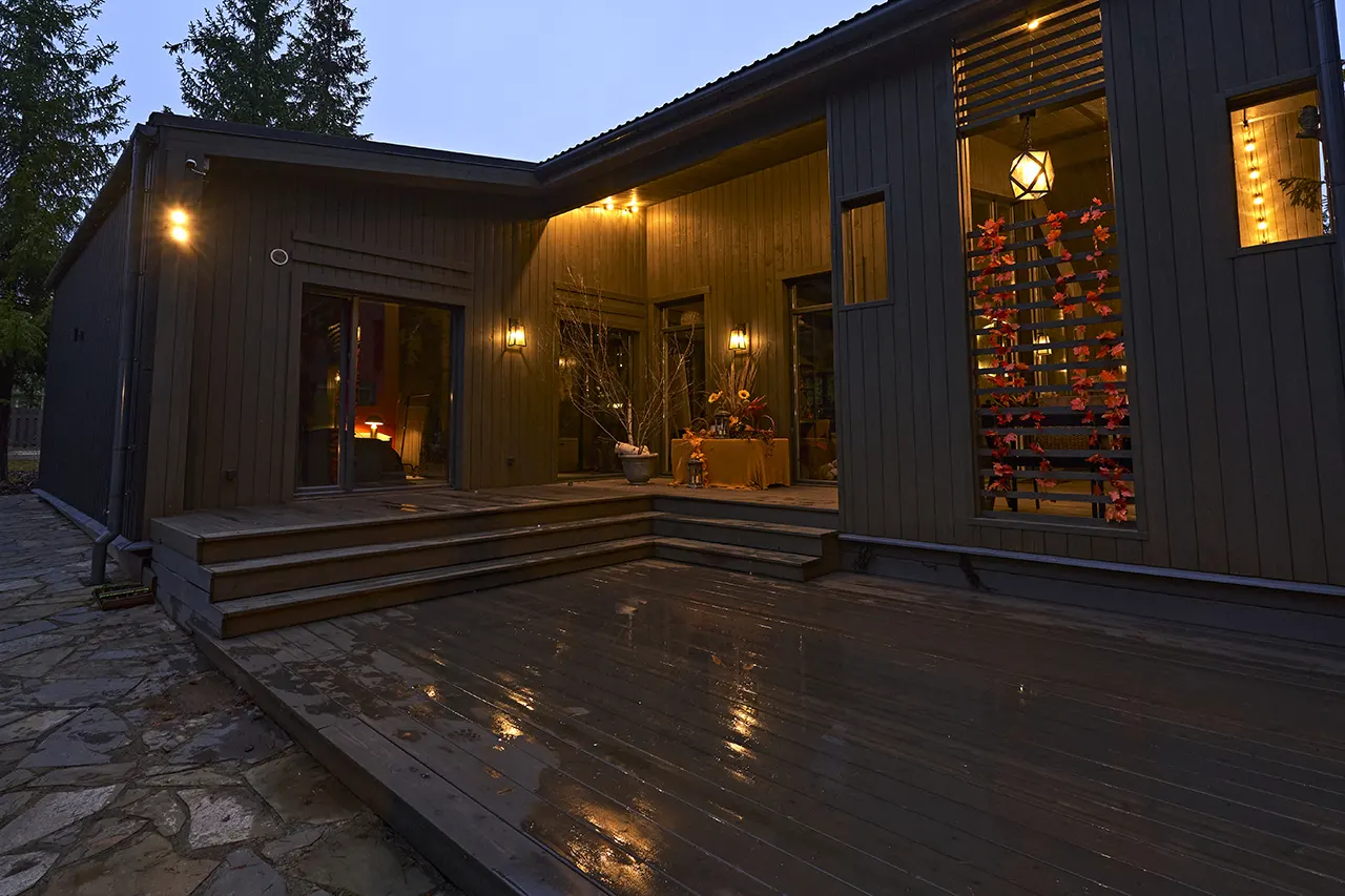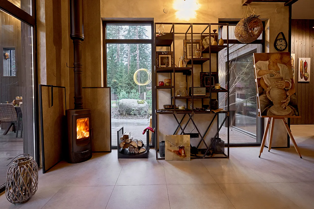 Коммуникации и качественное утепление позволяют жить в барнхаусе на постоянной основе. Владельцам годами не придется вспоминать о ремонте, ведь для строительства использовались надежные материалы. При этом мы подбирали решения с наиболее выигрышным соотношением цены и качества. Например, кровля выполнена из профлиста. Материал бюджетный, но практичный, износостойкий и вписывается в концепцию лаконичной эстетики барнхауса.