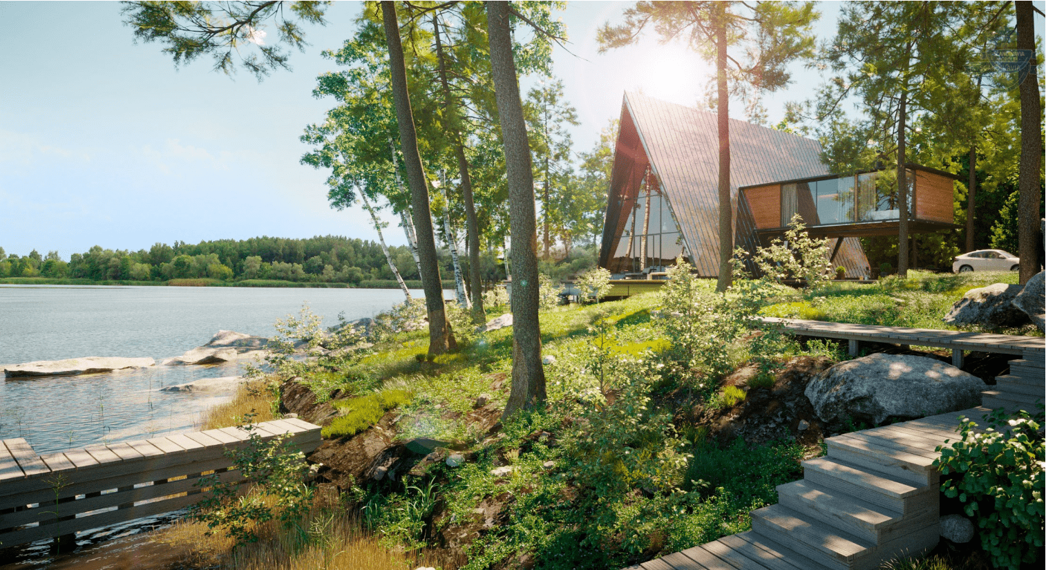 A-Frame (А-фрейм) – это архитектурный стиль, в котором треугольник является главным элементом. Часто форма строения в этом стиле вызывает ассоциацию с изящной буквой «А». Вместо ожидаемой ассоциации ограниченностью внутреннего пространства из-за скошенных стен, такой каркасный дом — шалаш (как их еще называют) становится великолепным произведением искусства, соединяющим в себе мастерство архитектуры и элегантный баланс между функциональностью и эстетикой.