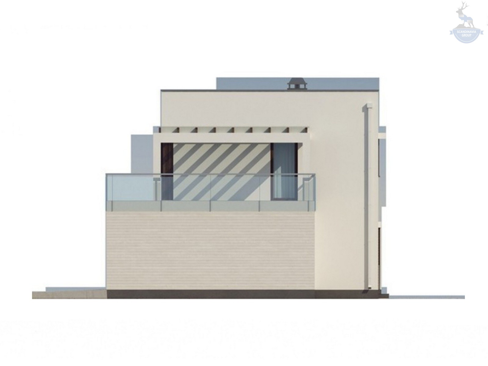 Экстерьер здания замечателен асимметричным расположением элементов. Чистые линии и простые формы создают элегантный и рациональный дизайн, который впишется в любой ландшафт и гармонично соседствует с окружающей природой. Внешняя отделка выполнена в минималистичных цветах, а на фасаде с террасой установлены панорамные окна. Ограждение балкона выполнено из закаленного стекла, что придает здание законченый минималистичный и современный вид.