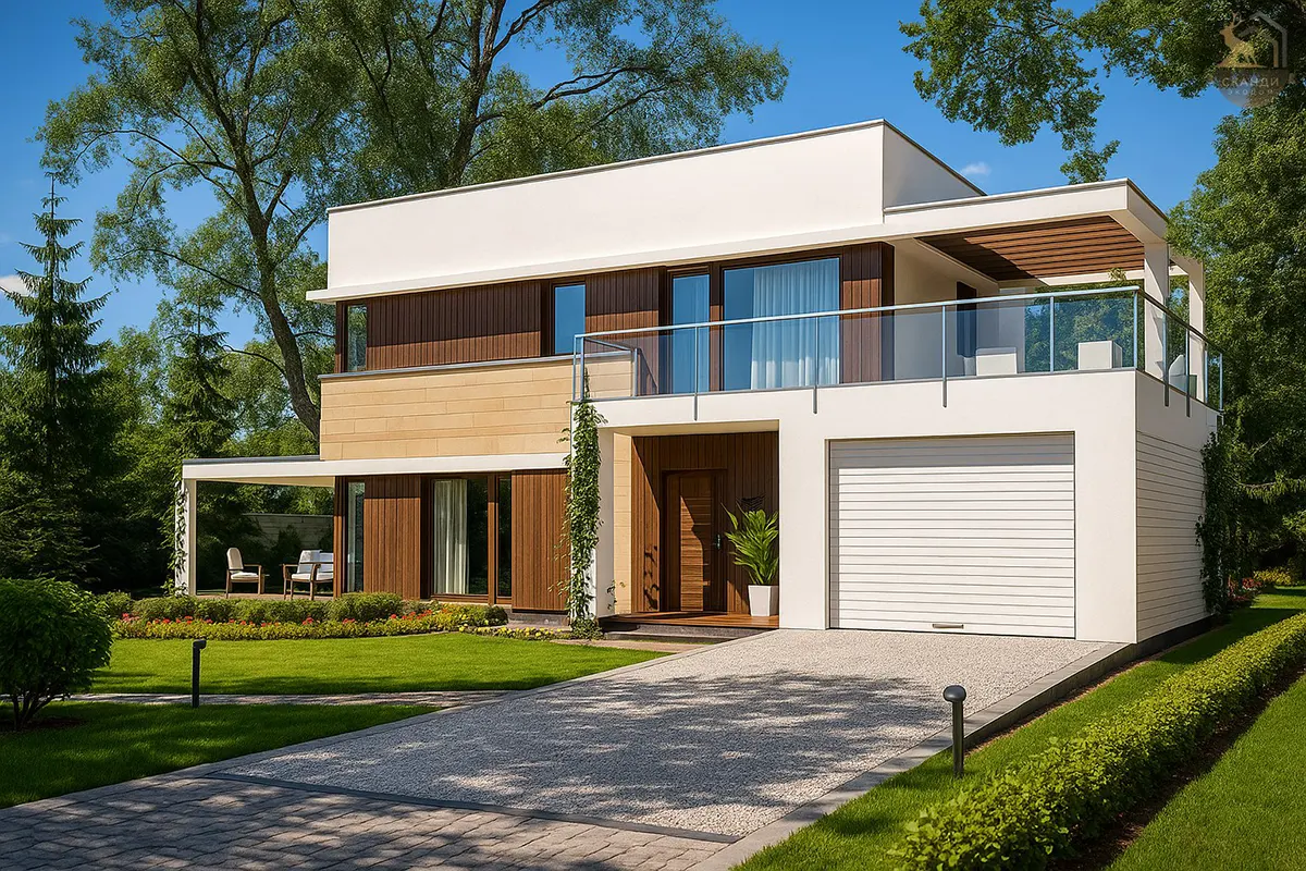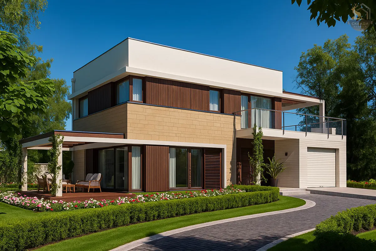 Каркасный дом с плоской крышей, 198 м²