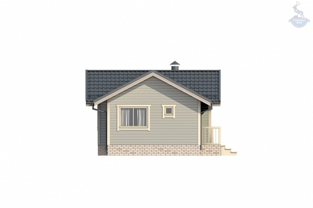 Каркасный дом по проекту КД-680 — это компактный и уютный одноэтажный коттедж площадью 60 м². Ключевые особенности экстерьера проекта: широкие окна и второй свет на главном фасаде, уютное крыльцо у входной двери, асимметричное расположение элементов. Внешняя отделка здания задумана в нейтральных цветах без резких контрастов и акцентов, что задает атмосферу покоя и гармонии.