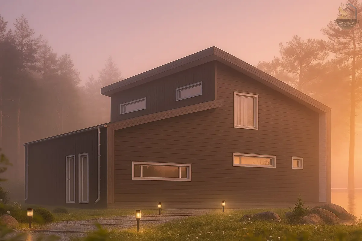 Двухэтажный каркасный дом с сауной: сочетание минимализма и комфорта