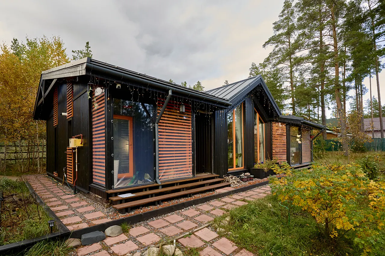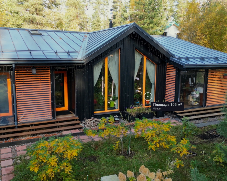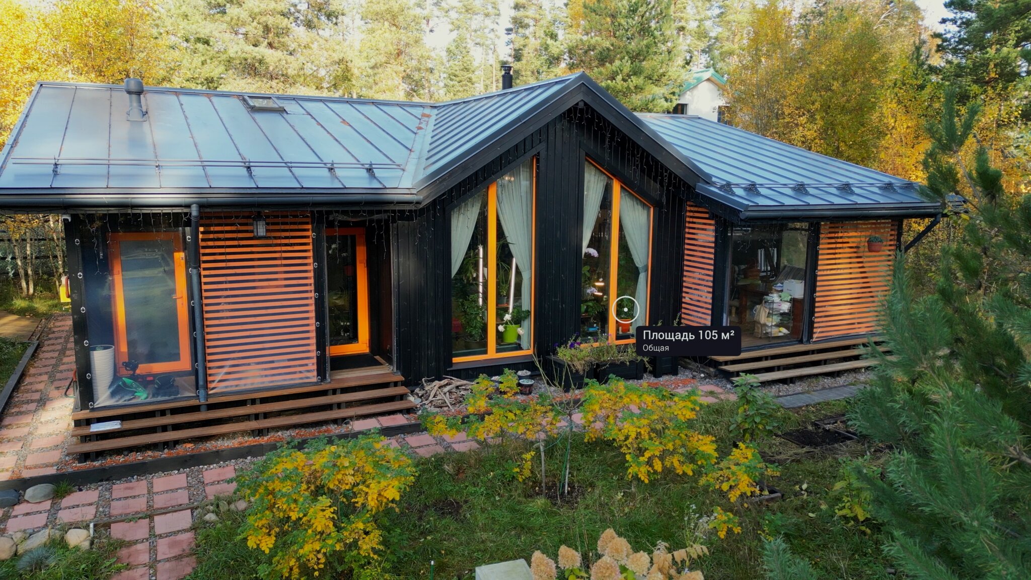 Каркасный дом площадью 105 квадратных метров построен по проекту КД-790 осенью 2022 года. Место его расположения — поселок Финский бриз Ленинградской области. Участки здесь предназначены для ИЖС. Дом используется для круглогодичного проживания.