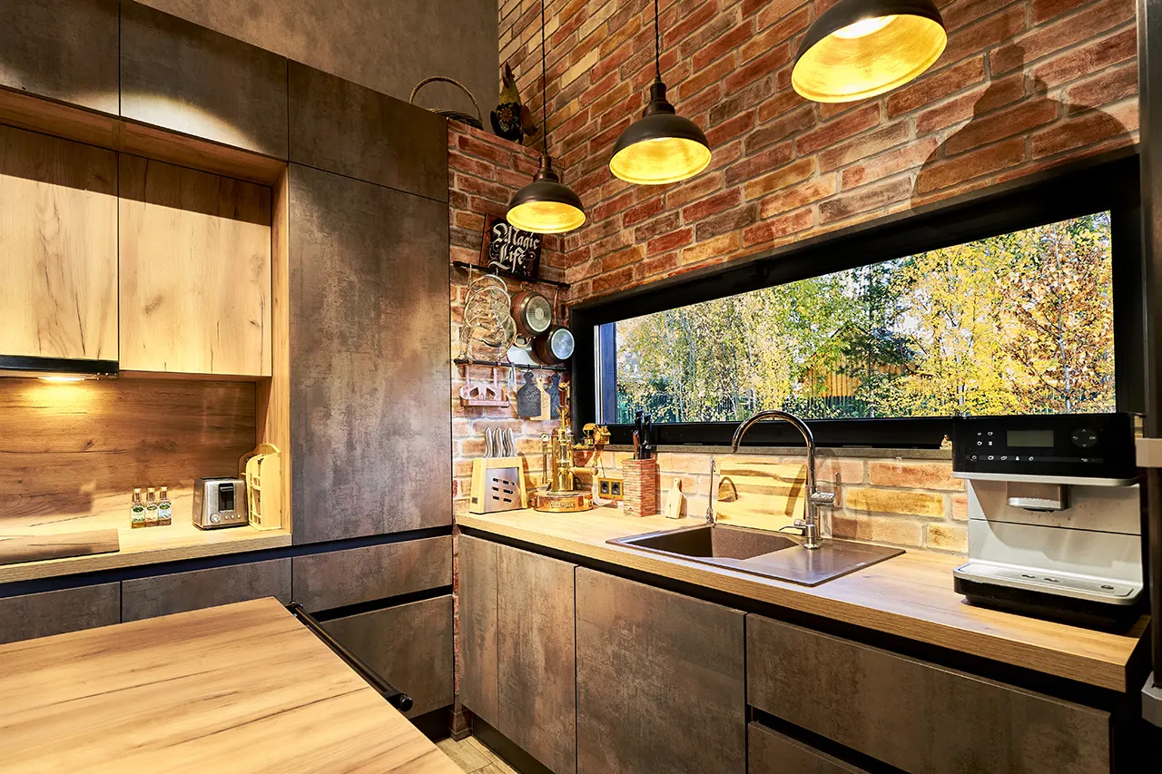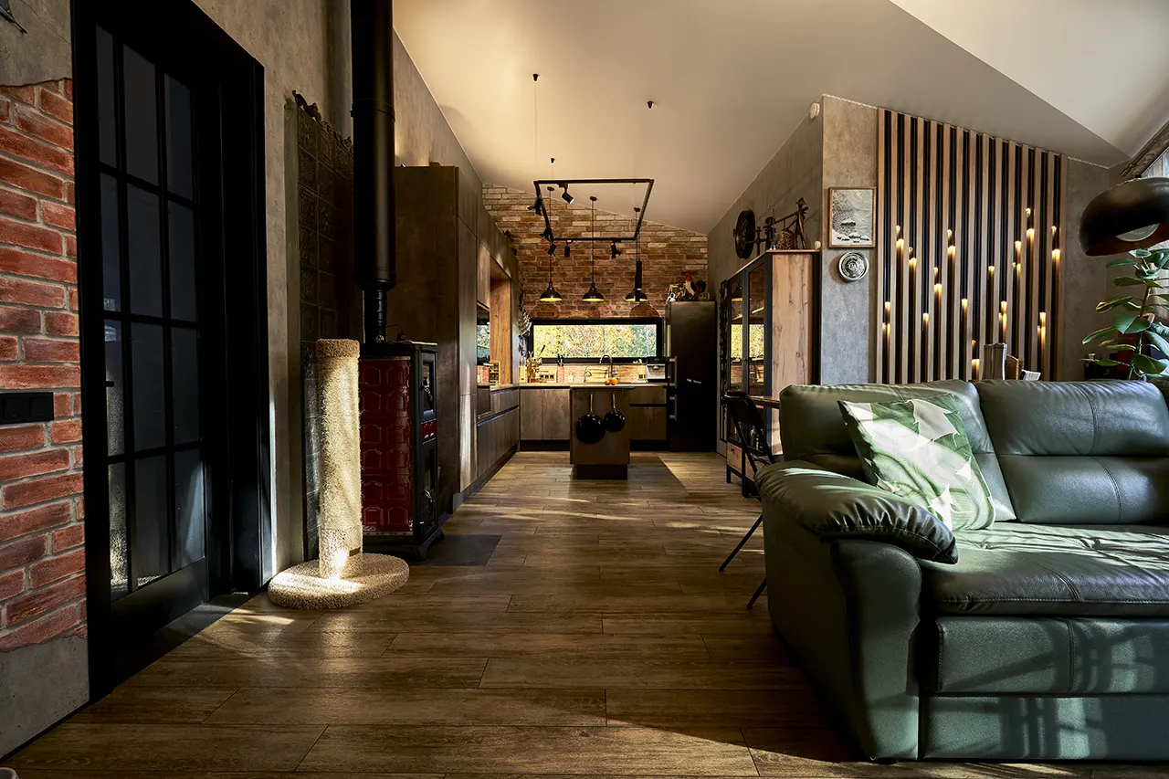 Барнхаус прекрасно вписывается в природный ландшафт благодаря стильной и лаконичной внешней отделке. Она исполнена из фасадной доски — легкого и надежного материала, который не оказывает давления на стены дома. Здание защищено от чрезмерного воздействия влаги благодаря водостоку «Docke» и двускатной крыше из качественной металлочерепицы.