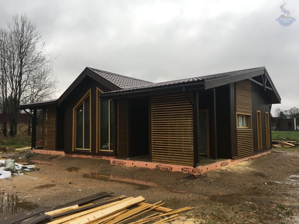 Проект дома был изменён по сравнению с референсом, поскольку будущие владельцы решили спланировать пространство помещения иначе, уменьшить площадь жилья. Изменения в исходные планировки коттеджей от Сканди ЭкоДом всегда вносятся бесплатно. Возможен также заказ индивидуального проекта. Итоговая стоимость строительства меняется в зависимости от применяемых архитектурных решений, подведенных коммуникаций и других особенностей готового дома. Доступна оплата наличными либо с помощью ипотеки, кредита. Возможно привлечение средств маткапитала.