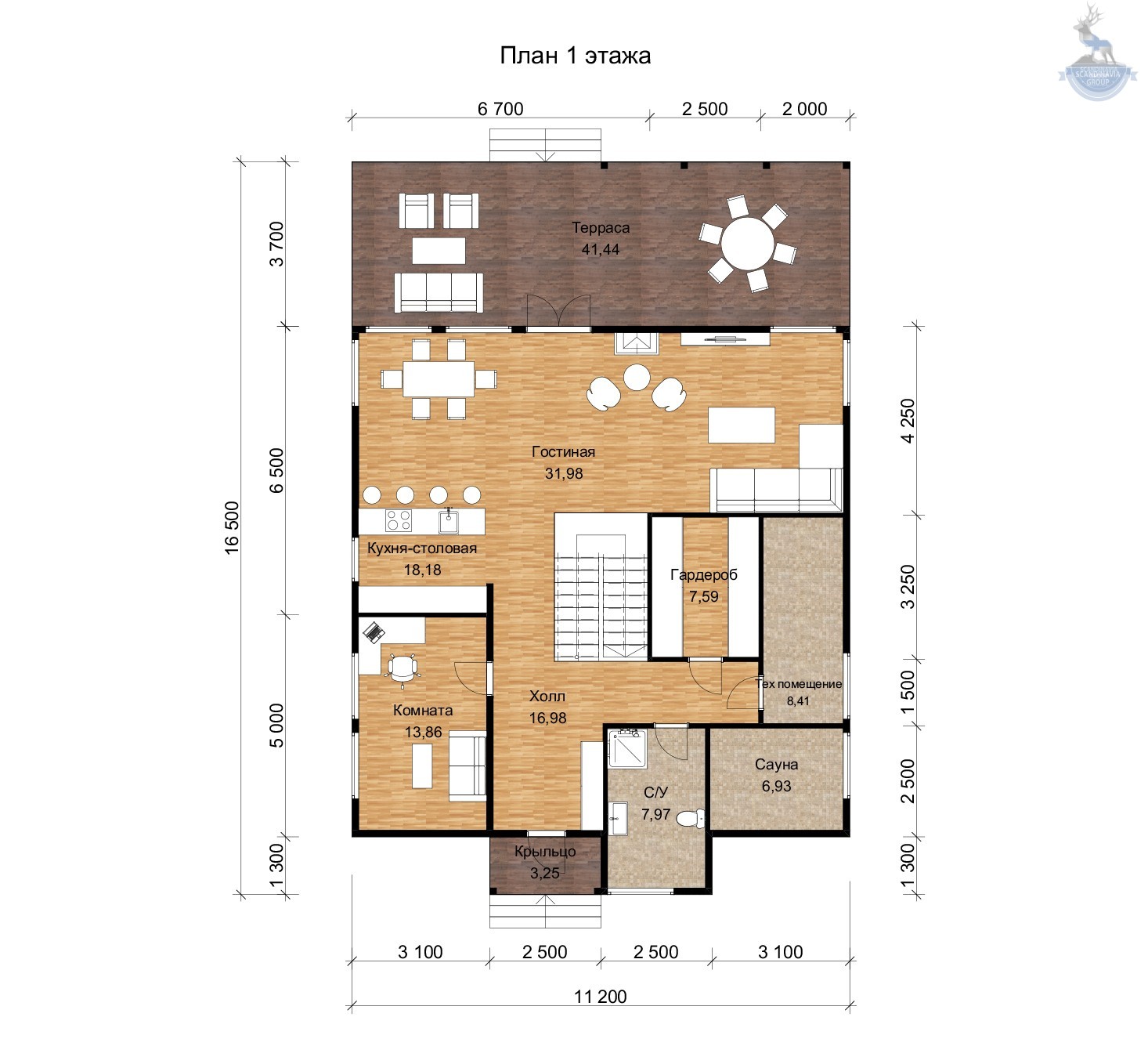 Ключевые особенности проекта КД-820: просторная терраса, частично укрытая навесом, крыльцо у главного входа, открытая планировка территории для семейного досуга и приема гостей, множество индивидуальных комнат. Панорамное остекление фасада и второй свет над гостиной обеспечивают достаточное количество естественного света в помещениях, а современные материалы для теплоизоляции и эффективные системы отопления и вентиляции помогут поддержать комфортную для жильцов температуру в любое время года.