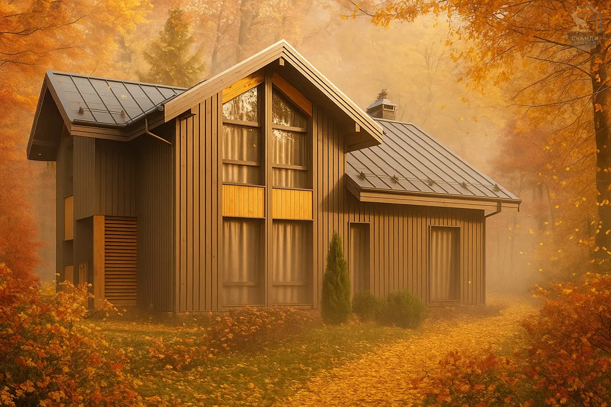 Дом собран в прочную “коробку”: фундамент, обвязка, каркас, окна/дверь, кровля, внешняя отделка и водосточная система. Дальше можно планировать следующие этапы — утепление, инженерию и внутренние работы под свои задачи и бюджет. Можно остановить строительство на любой срок.