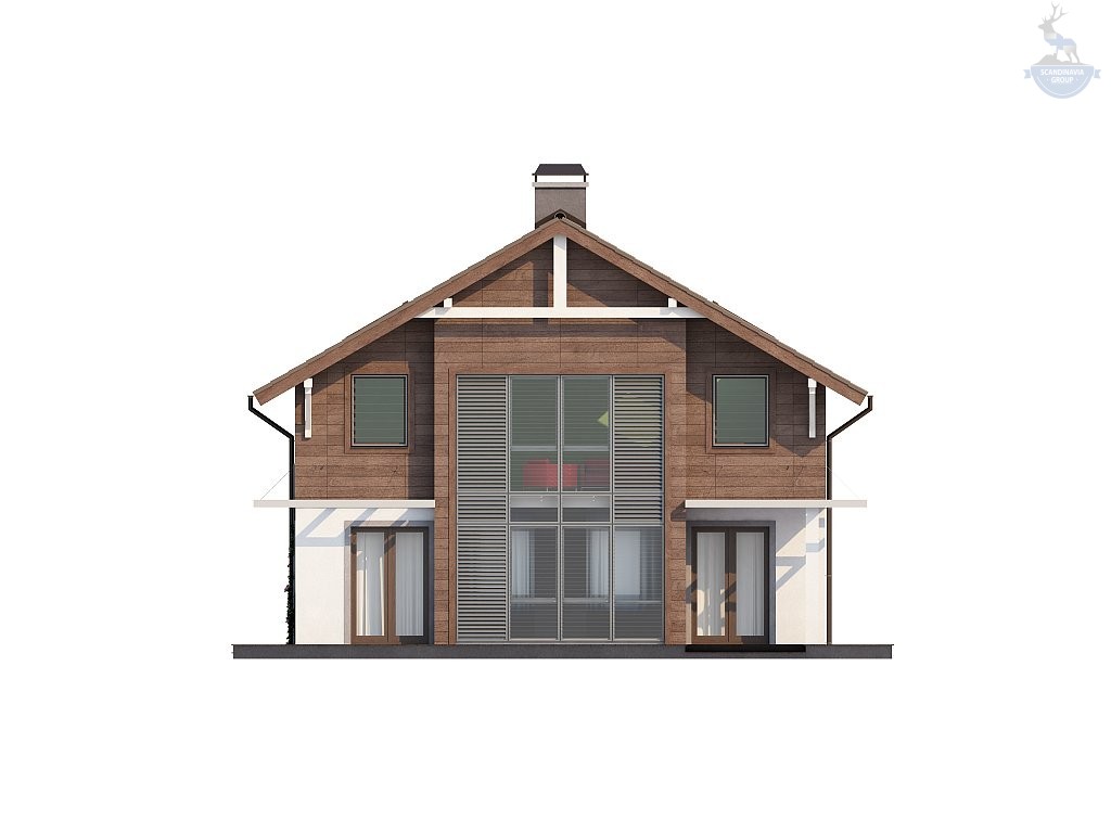 Двухэтажный каркасный дом с террасой и камином, 165 м²