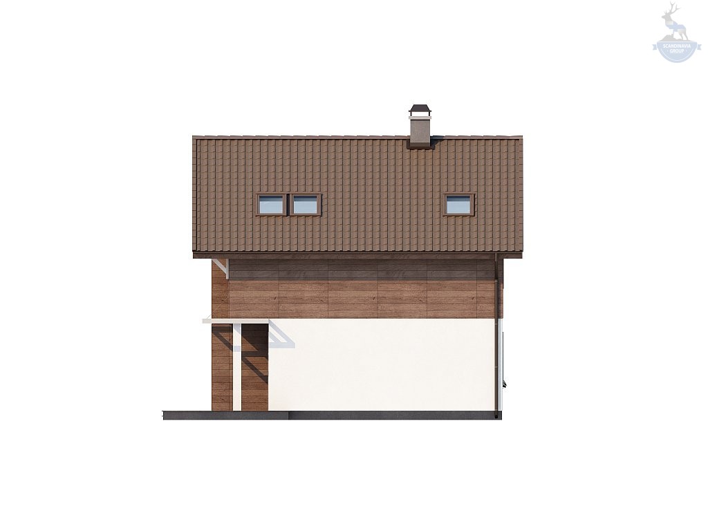 Проект КД-840 — это современный проект дома. Часть двухскатной крыши отлично сочетается с деревянными балками, выдвинутыми наружу. Специальные ажурные решетки защищают террасу с обеих сторон. Внутренний интерьер очень разнообразен, но при этом максимально практичен. Здесь нет абсолютно ничего лишнего, что не могло бы принести осязаемую пользу.