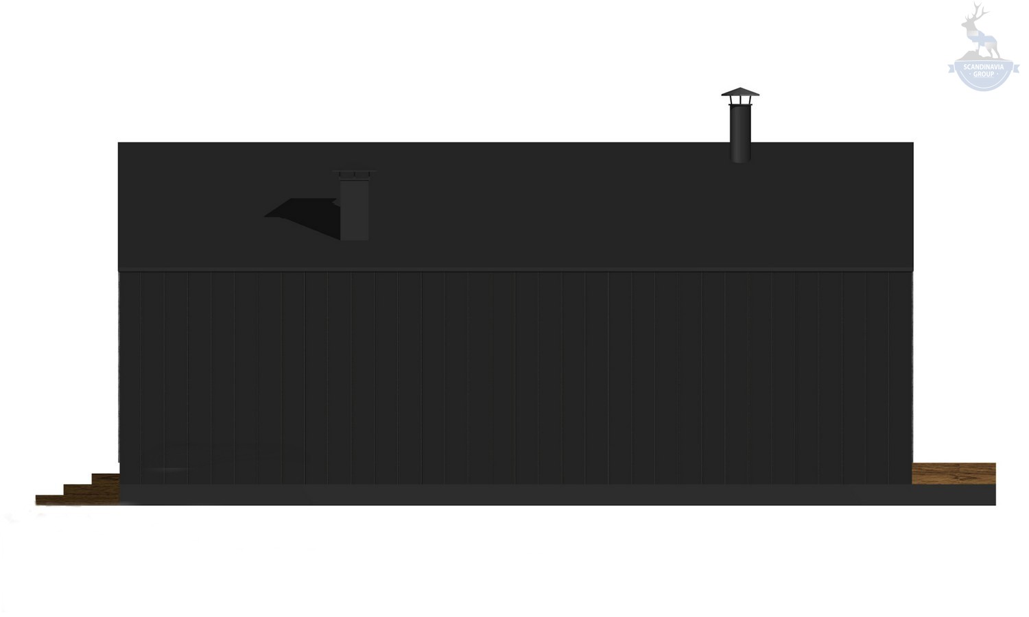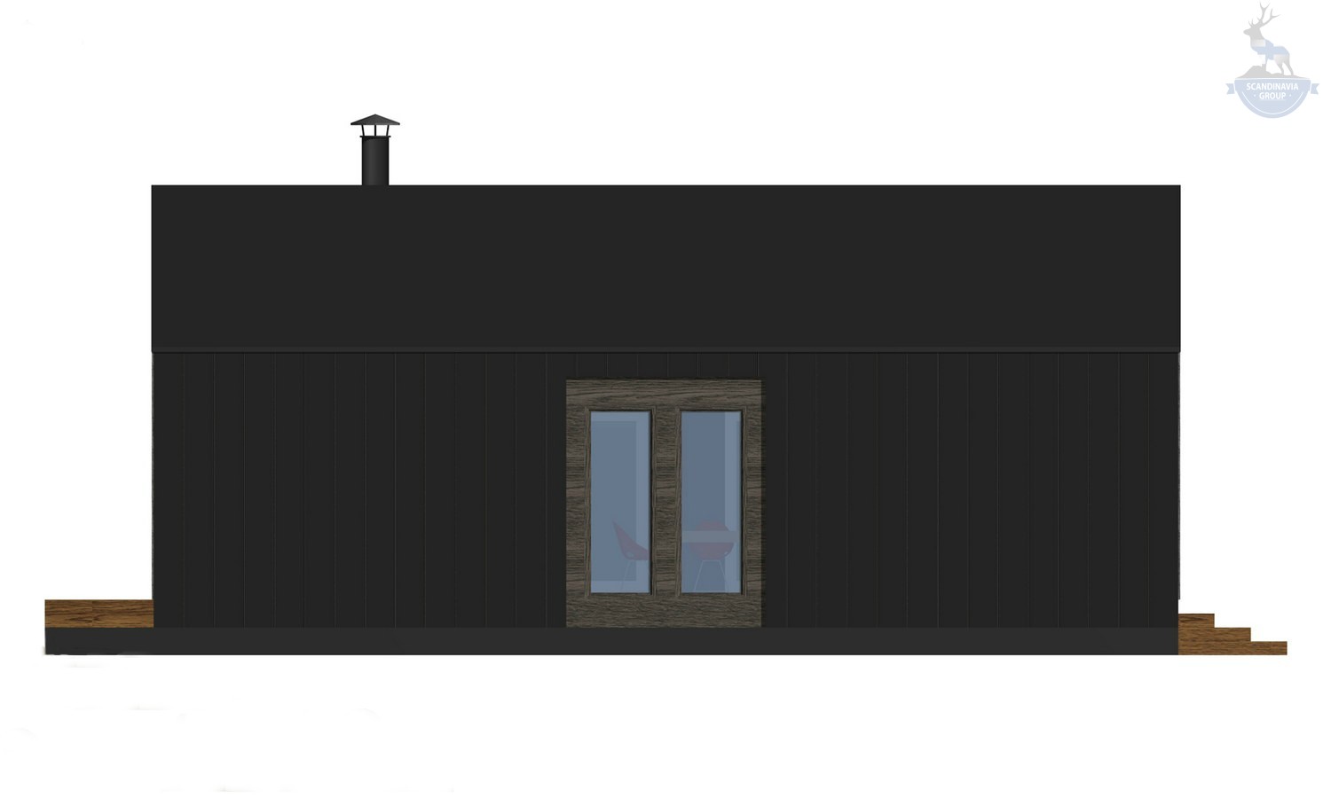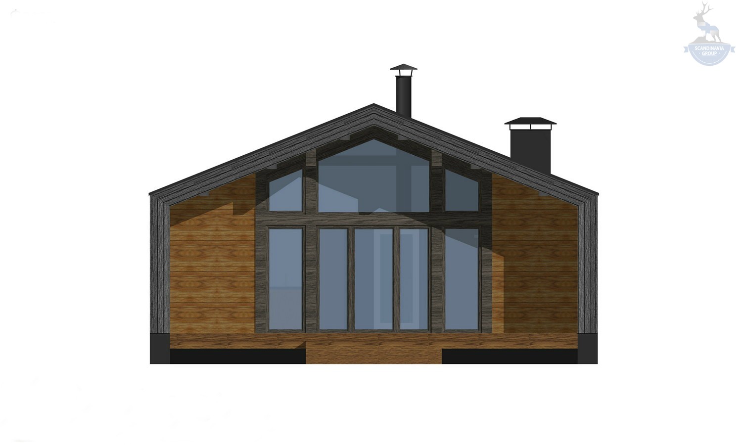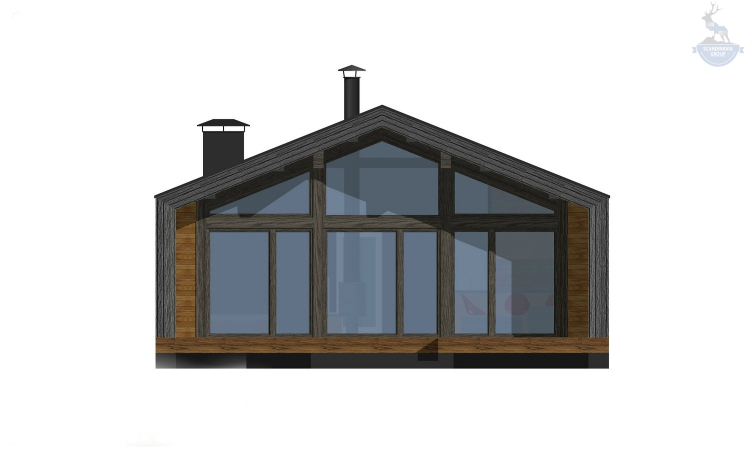 Для отделки фасадов мы предлагаем современные и качественные материалы. Кровля и два боковых фасада облицованы металлом, изготовленным по технологии «фальцевая кровля». На фасадах с остеклением использован деревянный планкен.