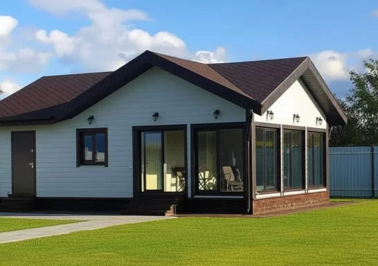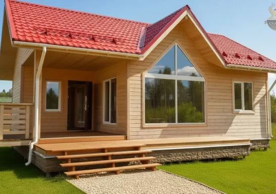 Владельцы проводят время в доме с комфортом благодаря оснащению базовым набором удобств. Ветрозащитная плита оберегает жилье от воздействия воздушных потоков и шума. Двухкамерные окна с функцией энергосбережения позволяют удерживать тепло в помещении. Подведенные коммуникации предоставляют возможность пользоваться водопроводом, туалетом, электроприборами. Современная планировка дома позволила владельцам удобно организовать пространство.