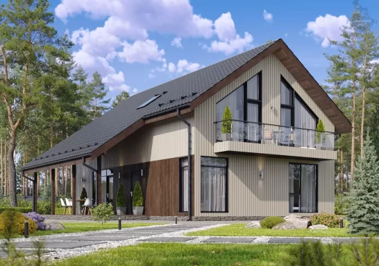 Каркасный дом с балконом и террасой: больше света и пространства