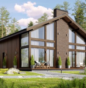 - Варианты остекления — от классических мелких окон до смелых панорамных решений между балками