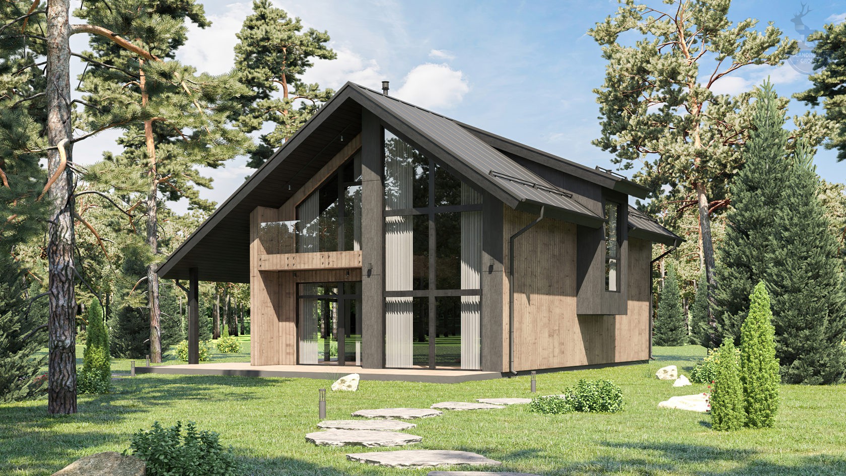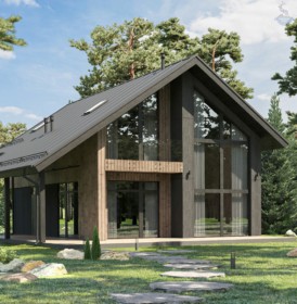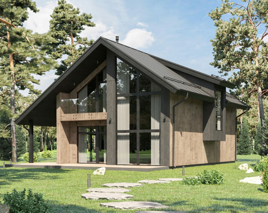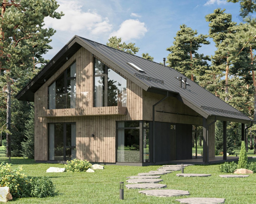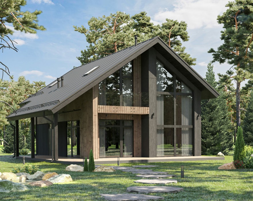 Например, каркасный дом с односкатной крышей. Самую высокую стену здания обычно размещают с южной стороны, что позволяет использовать солнечный свет максимально эффективно. Если в этой стене расположить панорамные окна, то они обеспечат прекрасное естественное освещение для внутренних помещений. Кроме того, современный вид коттеджа с плоской односкатной крышей выгодно подчеркивает стиль и вкус владельца.